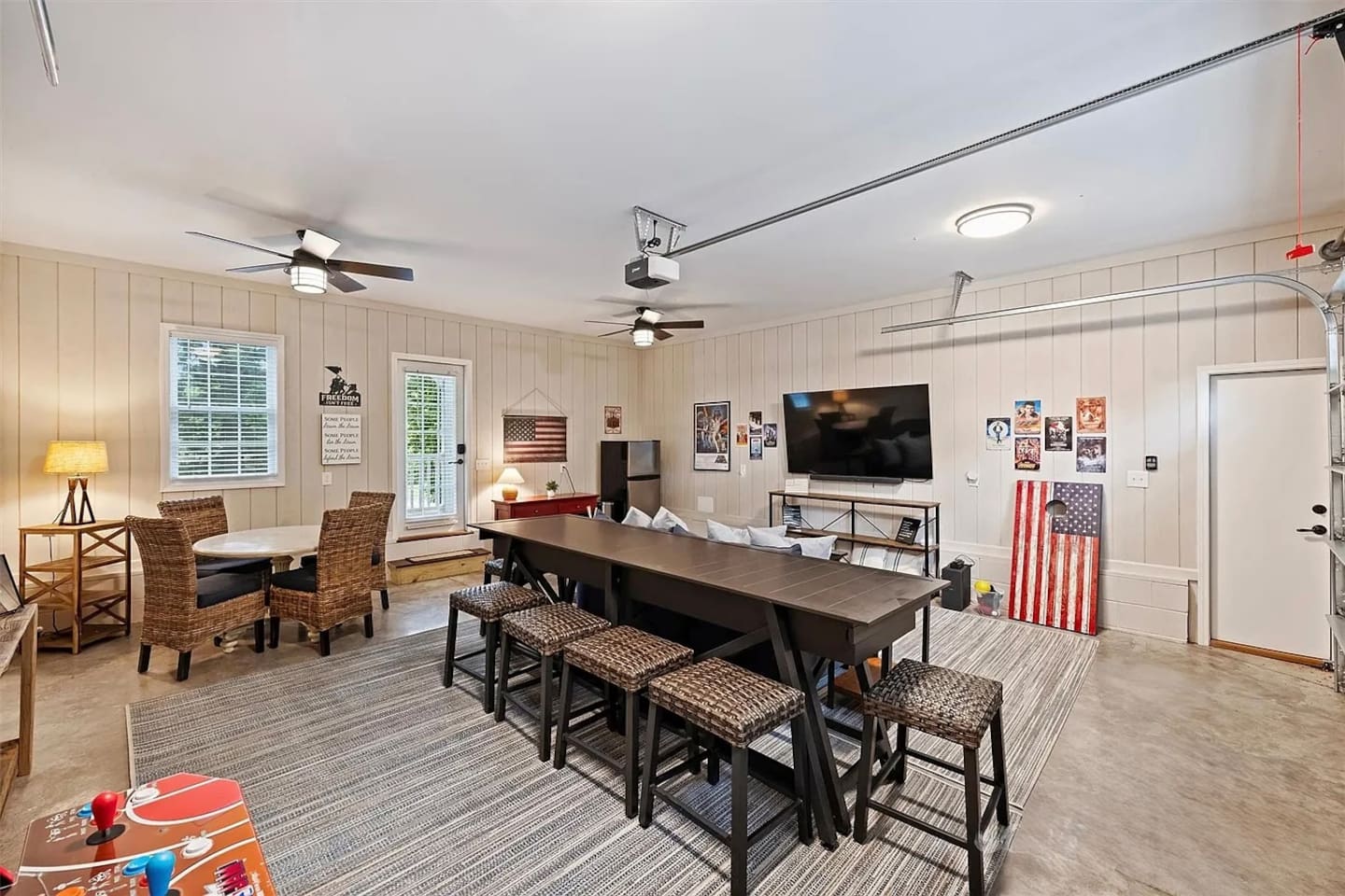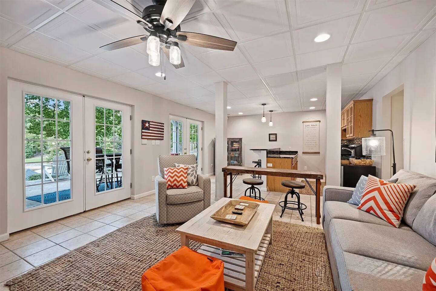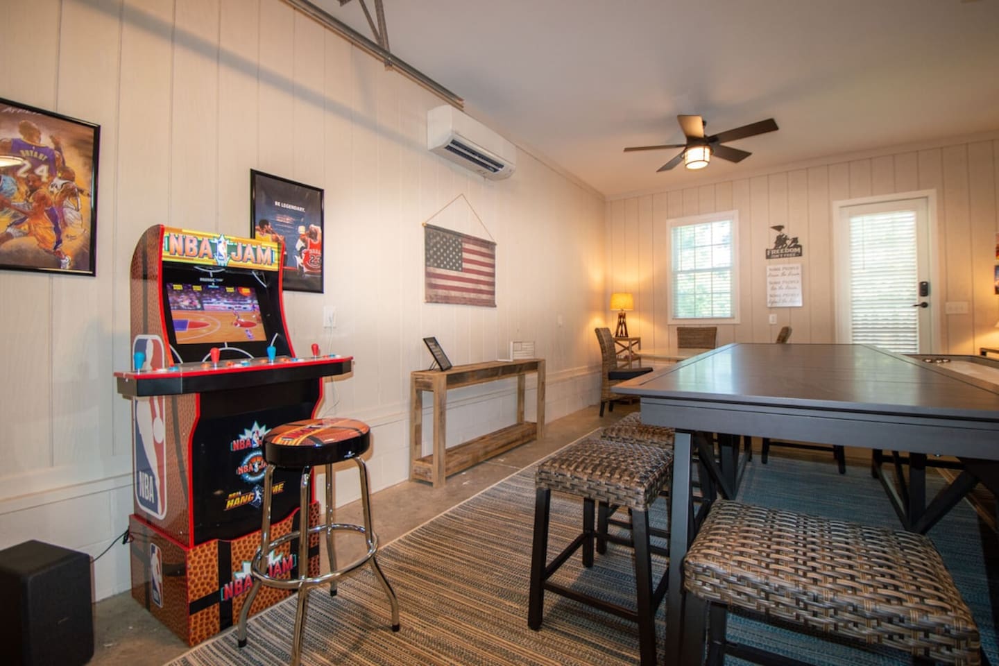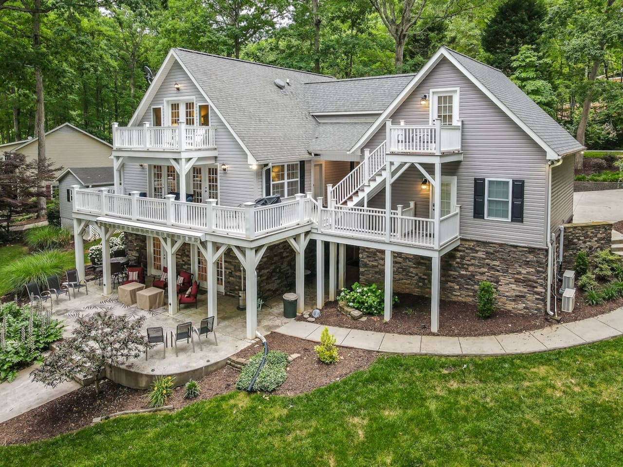 Paradise Found – Lake Norman Waterfront Escape with Game Room, Dock, Luxury Outdoor Living & Pet-Friendly Perks 📍 Lake Norman | 🛏 5 Bedrooms + Loft | 🛁 4 Bathrooms | Sleeps 12 | 🐾 Dog-Friendly 🎮 Game Room | 🔥 Fire Pits | 🚤 Private Dock | 🌅 Multiple Decks | 🛶 Kayaks & Paddle Board Whether you're soaking up the sun on the boat dock, racking up points in the game room, or escaping to a cozy nook with a good book, you'll find it all at Paradise Found. This stunning lakefront retreat is designed for comfort, connection, and fun, offering multiple levels of relaxation and recreation with space for the entire family to unwind. On the main level, step onto the breezeway deck that features an outdoor dining area. The wraparound deck on the lakeside is the perfect morning coffee spot and includes a grill for lakeside meals. Inside, the open floor plan connects the inviting living area, complete with a 55” TV, to a spacious kitchen with a central island, double ovens and eat-in dining space, all overlooking the lake and beautifully landscaped yard. The main level also includes a king primary bedroom with a sitting area and desk, a 50” TV, walk-in closet, and an ensuite bathroom that also functions as a hall bath. A full-size laundry room completes this floor. **Brand new Traeger pellet grill and large capacity washer and dryer** Upstairs, the loft provides a cozy spot to relax and a dedicated workspace complete with a monitor, keyboard and printer. Or access the upper deck with Adirondack chairs and expansive lake views. The loft leads to two bedrooms: one with two queen beds and the other with one queen bed, a sitting area with a 50” TV, and private outdoor access to the lakeside deck. These rooms are connected by a jack-and-jill style bathroom with a hallway dressing area. The lower level is made for laid-back moments, with a large living area featuring a 65” TV and Bluetooth sound bar, perfect for movie nights or board games and a kitchenette. Two king bedrooms are also on this level—one with an ensuite/hall bathroom, the other with sliding glass doors that lead to the patio with a bistro table and chairs. The garage has been transformed into the ultimate game room. It includes a large 75” TV with a Bluetooth sound bar and subwoofer, a refrigerator/freezer, a shuffleboard table that converts into a bar or seating area, a designated card table, and an Infinity game console loaded with digital classics like Operation, Monopoly, and Yahtzee. Step outside to the beautifully furnished patio with fire tables, a heater, and plenty of comfortable seating. From here, a walkway leads to the boat house and private dock. You’ll find covered lakeside seating, four kayaks, a paddle board, a swim ladder, two jet ski ramps, and spots to tie up your boat. The boathouse is stocked with swim noodles, life jackets, and a small refrigerator/freezer for your drinks and lake-day treats. Paradise Found is the perfect place to reconnect with family and friends, relax by the water, and enjoy the best of Lake Norman living. Book your stay today and start making unforgettable memories. ROOM DETAILS Main Level Primary Bedroom- King, ensuite bathroom (shower/tub combo) Upper Level Queen Bedroom- (2), Shared Jack and Jill bathroom (shower/tub combo) Queen Bedroom- (1) Shared Jack and Jill bathroom Lower Level King Bedroom- Shared hallway bathroom (shower/tub combo) King Bedroom- Shared bathroom Don't forget to add a boat rental to your stay to get the most out of your Lake Norman experience or bring your own! 📌 Important Notes for Your Stay: 🚗 No Garage Parking Garage access is not available during your stay—ample driveway parking is provided. ⏰ Early Check-In / Late Check-Out Want to extend your stay a bit? Early check-in and late check-out may be options but are subject to availability. Let us know and we’ll help as we’re able! 💍 No Events or Weddings We love a good celebration, but for the comfort of all guests and neighbors, events and weddings are not permitted. 🐶 Dog-Friendly with Fee Bringing your pup? We welcome dogs! $125 for 1 or $75/dog up to 4. Just let us know! 🛥 Boat Dock Info Planning to bring your own boat? We’re happy to help—but please check with us first. While we have a private dock and boat lift, we can't guarantee compatibility with all boat types. 🌊 Lake Levels May Vary Water levels on Lake Norman can fluctuate daily and are outside of our control.
