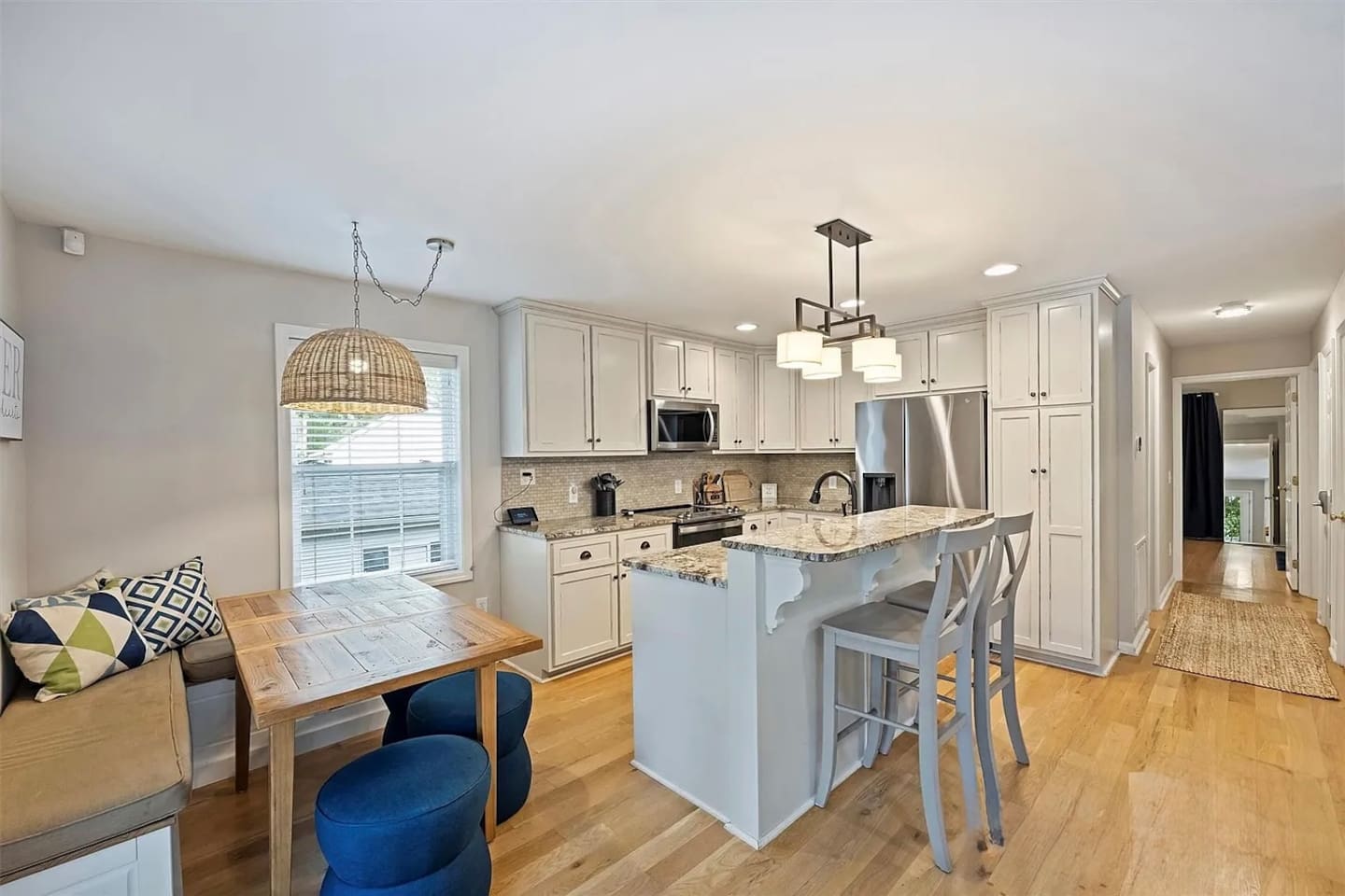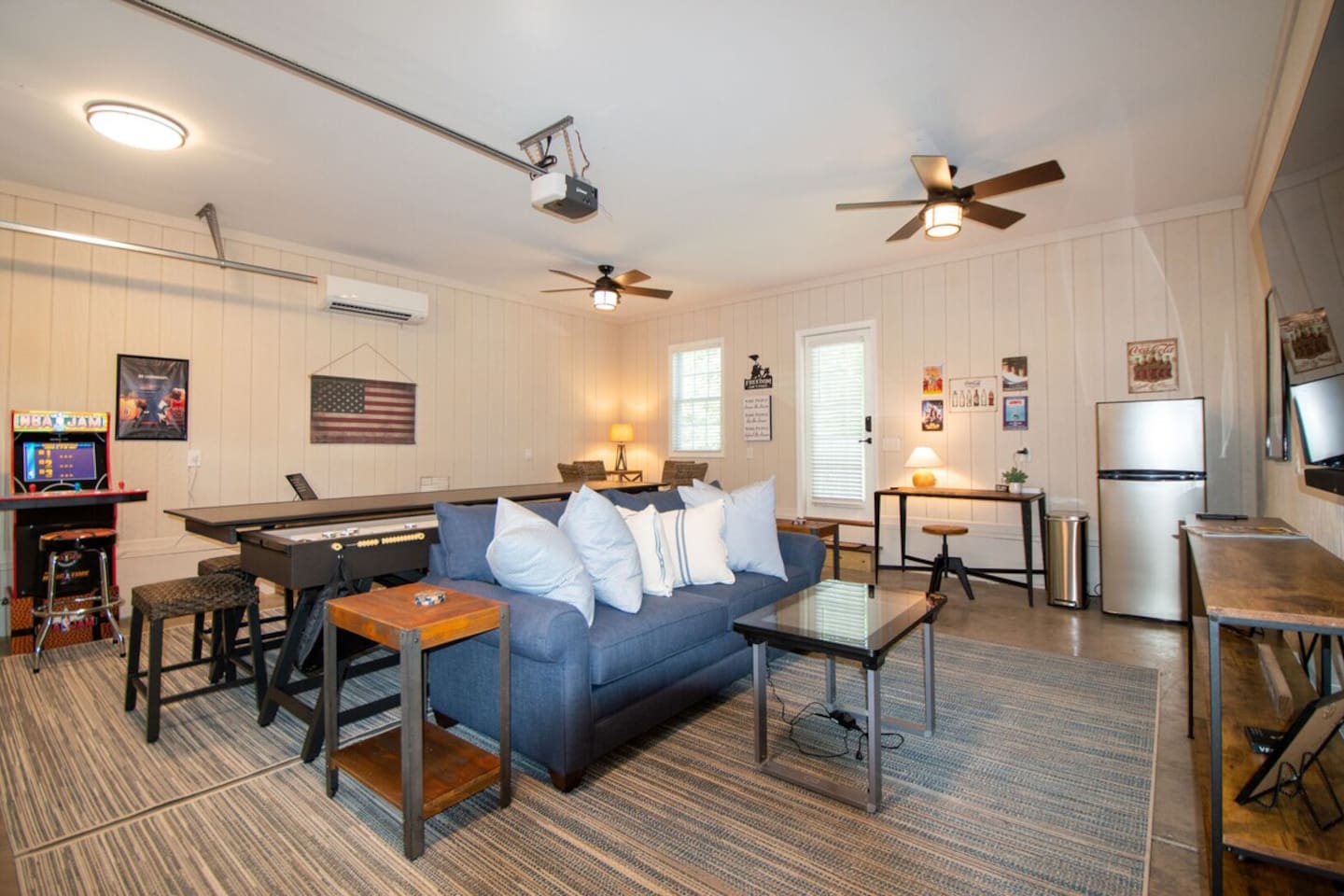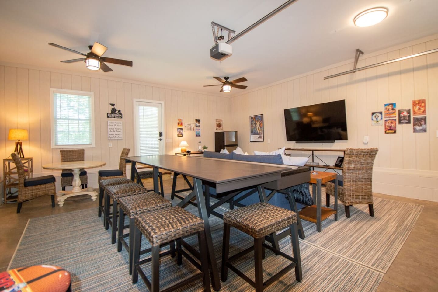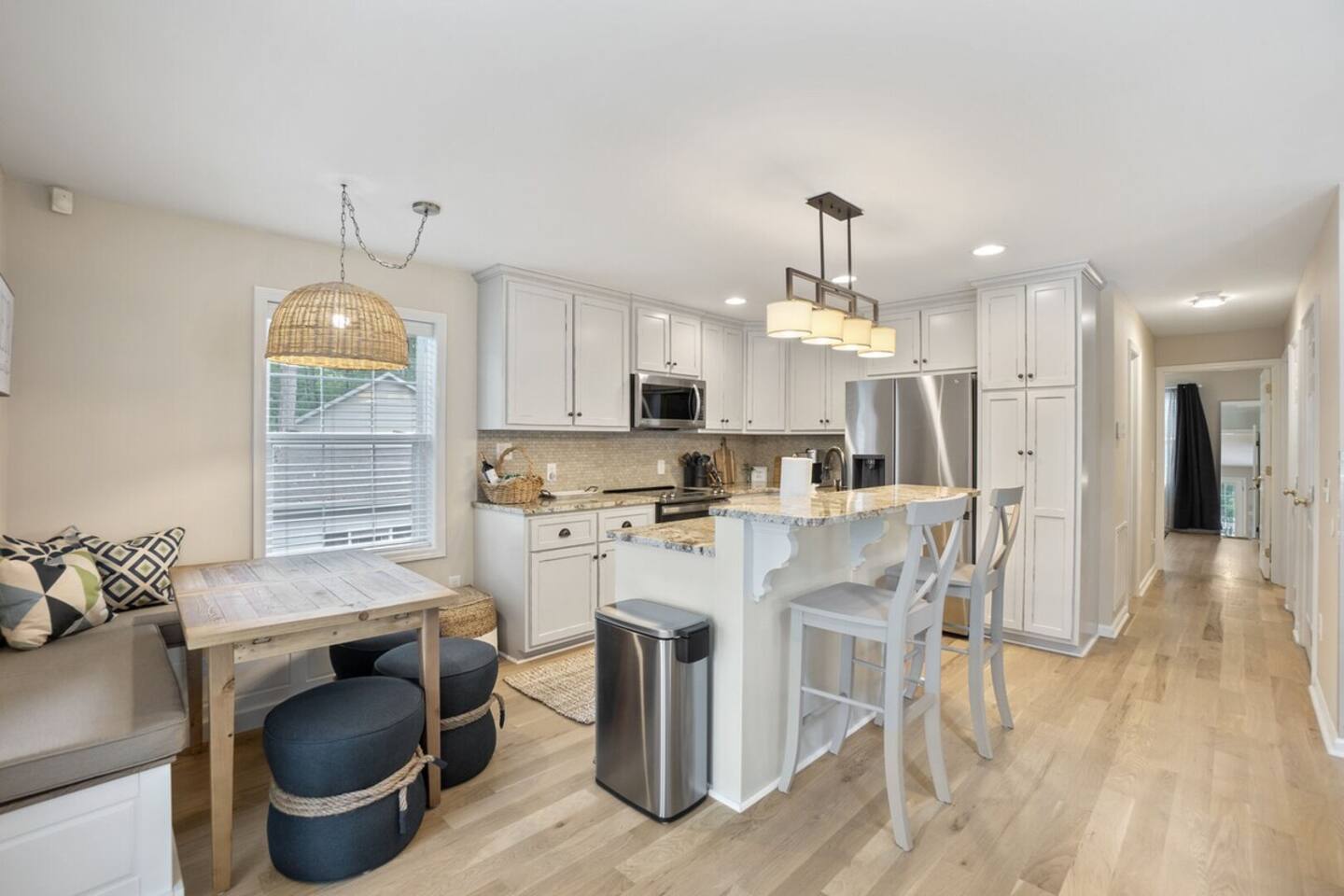 Paradise Found – Lake Norman Waterfront Escape with Game Room, Dock, Luxury Outdoor Living & Pet-Friendly Perks 📍 Lake Norman | 🛏 5 Bedrooms + Loft | 🛁 4 Bathrooms | Sleeps 12 | 🐾 Dog-Friendly 🎮 Game Room | 🔥 Fire Pits | 🚤 Private Dock | 🌅 Multiple Decks | 🛶 Kayaks & Paddle Board Whether you're soaking up the sun on the boat dock, racking up points in the game room, or escaping to a cozy nook with a good book, you'll find it all at Paradise Found. This stunning lakefront retreat is designed for comfort, connection, and fun, offering multiple levels of relaxation and recreation with space for the entire family to unwind. On the main level, step onto the breezeway deck that features an outdoor dining area. The wraparound deck on the lakeside is the perfect morning coffee spot and includes a grill for lakeside meals. Inside, the open floor plan connects the inviting living area, complete with a 55” TV, to a spacious kitchen with a central island, double ovens and eat-in dining space, all overlooking the lake and beautifully landscaped yard. The main level also includes a king primary bedroom with a sitting area and desk, a 50” TV, walk-in closet, and an ensuite bathroom that also functions as a hall bath. A full-size laundry room completes this floor. **Brand new Traeger pellet grill and large capacity washer and dryer** Upstairs, the loft provides a cozy spot to relax and a dedicated workspace complete with a monitor, keyboard and printer. Or access the upper deck with Adirondack chairs and expansive lake views. The loft leads to two bedrooms: one with two queen beds and the other with one queen bed, a sitting area with a 50” TV, and private outdoor access to the lakeside deck. These rooms are connected by a jack-and-jill style bathroom with a hallway dressing area. The lower level is made for laid-back moments, with a large living area featuring a 65” TV and Bluetooth sound bar, perfect for movie nights or board games and a kitchenette. Two king bedrooms are also on this level—one with an ensuite/hall bathroom, the other with sliding glass doors that lead to the patio with a bistro table and chairs. The garage has been transformed into the ultimate game room. It includes a large 75” TV with a Bluetooth sound bar and subwoofer, a refrigerator/freezer, a shuffleboard table that converts into a bar or seating area, a designated card table, and an Infinity game console loaded with digital classics like Operation, Monopoly, and Yahtzee. Step outside to the beautifully furnished patio with fire tables, a heater, and plenty of comfortable seating. From here, a walkway leads to the boat house and private dock. You’ll find covered lakeside seating, four kayaks, a paddle board, a swim ladder, two jet ski ramps, and spots to tie up your boat. The boathouse is stocked with swim noodles, life jackets, and a small refrigerator/freezer for your drinks and lake-day treats. Paradise Found is the perfect place to reconnect with family and friends, relax by the water, and enjoy the best of Lake Norman living. Book your stay today and start making unforgettable memories. ROOM DETAILS Main Level Primary Bedroom- King, ensuite bathroom (shower/tub combo) Upper Level Queen Bedroom- (2), Shared Jack and Jill bathroom (shower/tub combo) Queen Bedroom- (1) Shared Jack and Jill bathroom Lower Level King Bedroom- Shared hallway bathroom (shower/tub combo) King Bedroom- Shared bathroom Don't forget to add a boat rental to your stay to get the most out of your Lake Norman experience or bring your own! 📌 Important Notes for Your Stay: 🚗 No Garage Parking Garage access is not available during your stay—ample driveway parking is provided. ⏰ Early Check-In / Late Check-Out Want to extend your stay a bit? Early check-in and late check-out may be options but are subject to availability. Let us know and we’ll help as we’re able! 💍 No Events or Weddings We love a good celebration, but for the comfort of all guests and neighbors, events and weddings are not permitted. 🐶 Dog-Friendly with Fee Bringing your pup? We welcome dogs! $125 for 1 or $75/dog up to 4. Just let us know! 🛥 Boat Dock Info Planning to bring your own boat? We’re happy to help—but please check with us first. While we have a private dock and boat lift, we can't guarantee compatibility with all boat types. 🌊 Lake Levels May Vary Water levels on Lake Norman can fluctuate daily and are outside of our control.